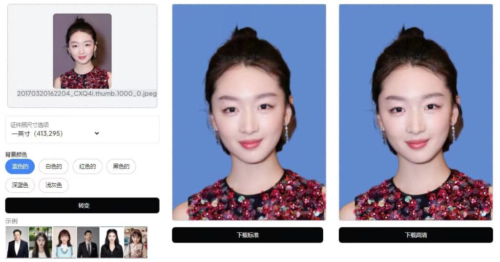 一个基于 AI 的证件照制作工具,上传人脸照片,选择尺寸与底色,即可进行生成,预设的尺寸有很多,如一寸、二寸、签证、公务员、驾照等,支持下载高清大图,免费使用,无需注册。
