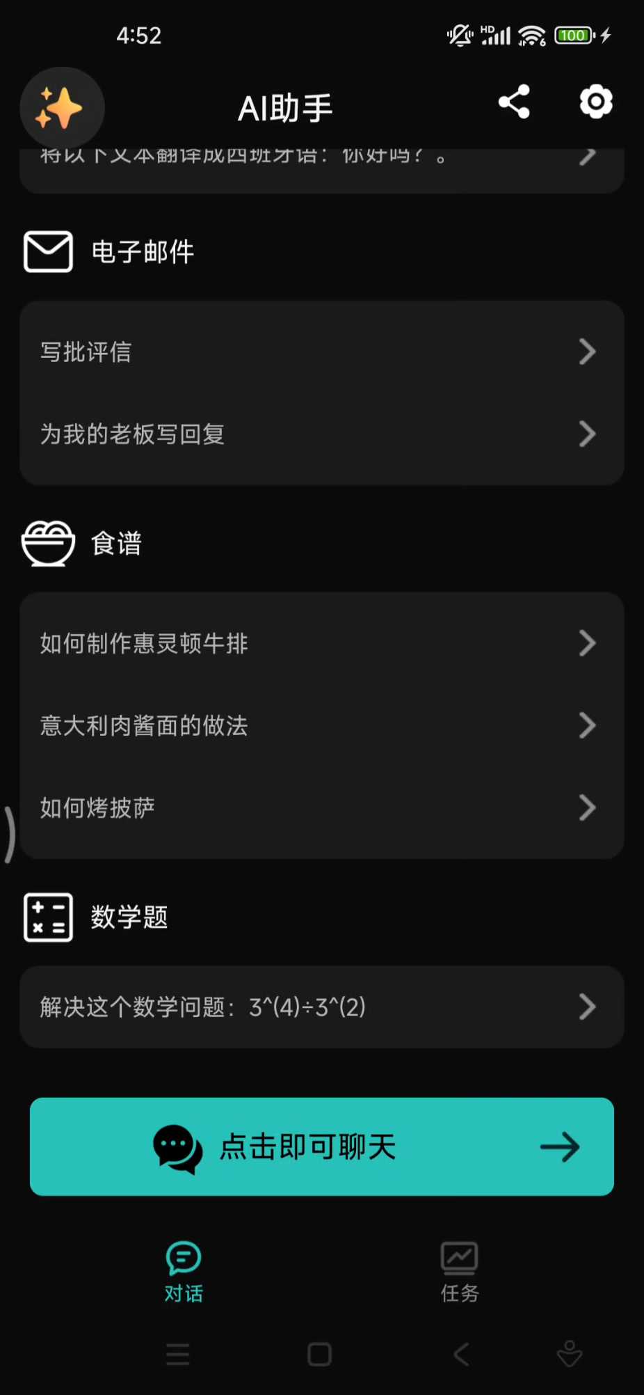 AI智能助手(高级版+无广告),这又是一款十分好用的AI智能工具!它帮助我们解决日常生活学习中遇到的各种难题,比如:信息查询、文案写作、创意、工作报告,以及学生朋友们,最为刚需的搜索答题!