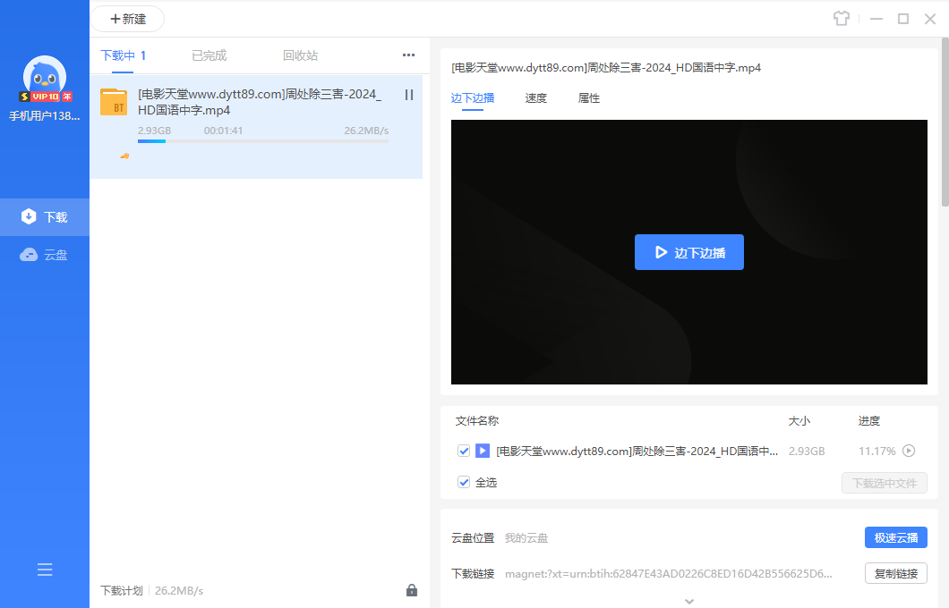 我这里随便给大家下载一个视频,下载速度真的 是非常快了,跑个20多M随随便便,爽!