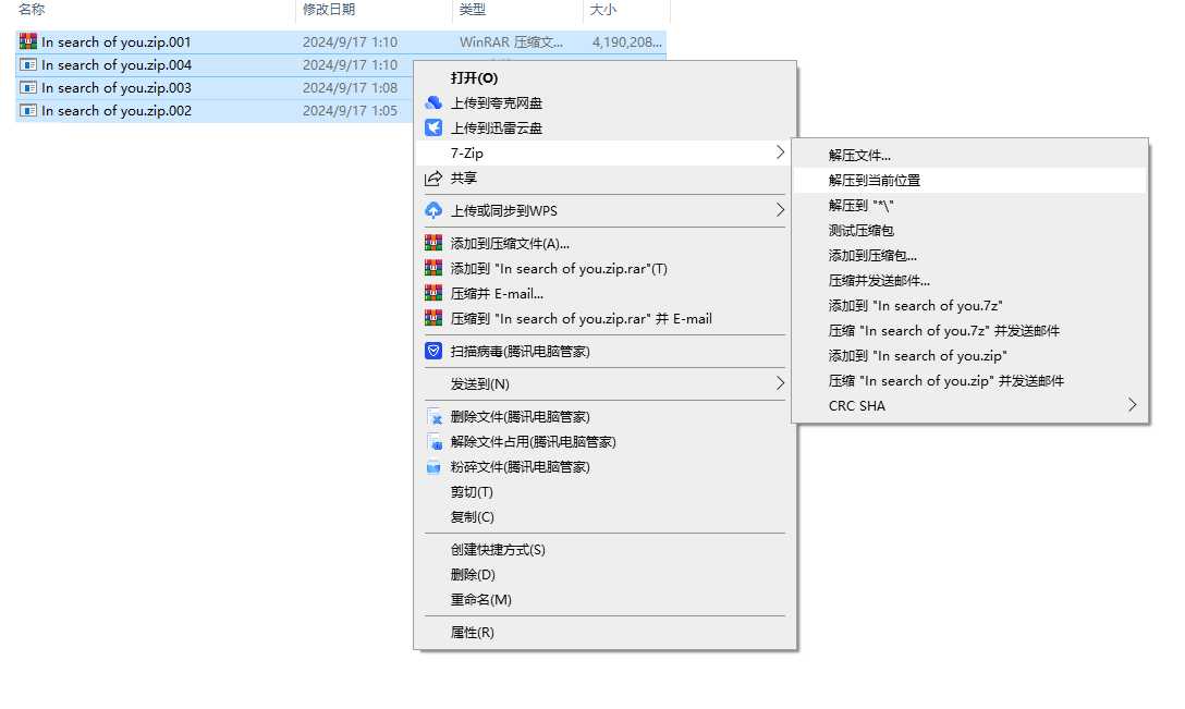 首先下载安装包,这次是4个文件需要全部下载,全部下载后我们全选四个文件然后一起解压即可。